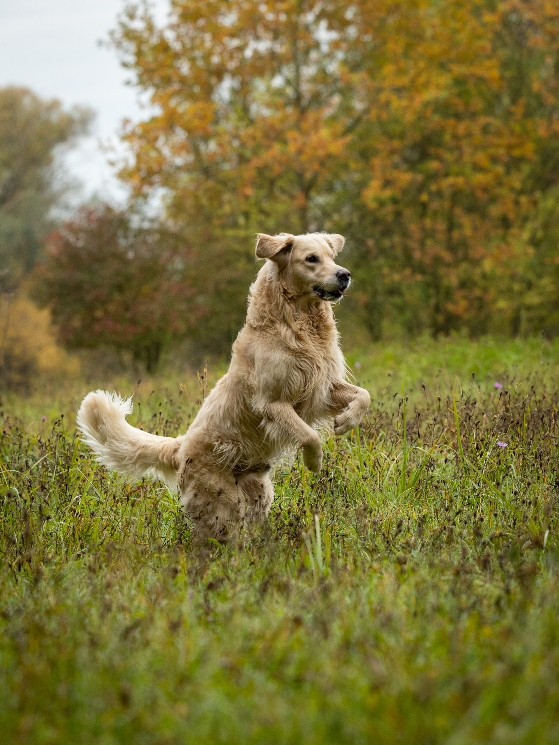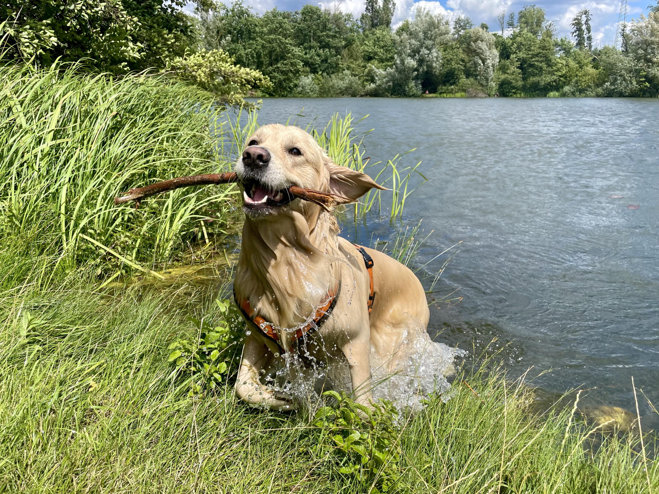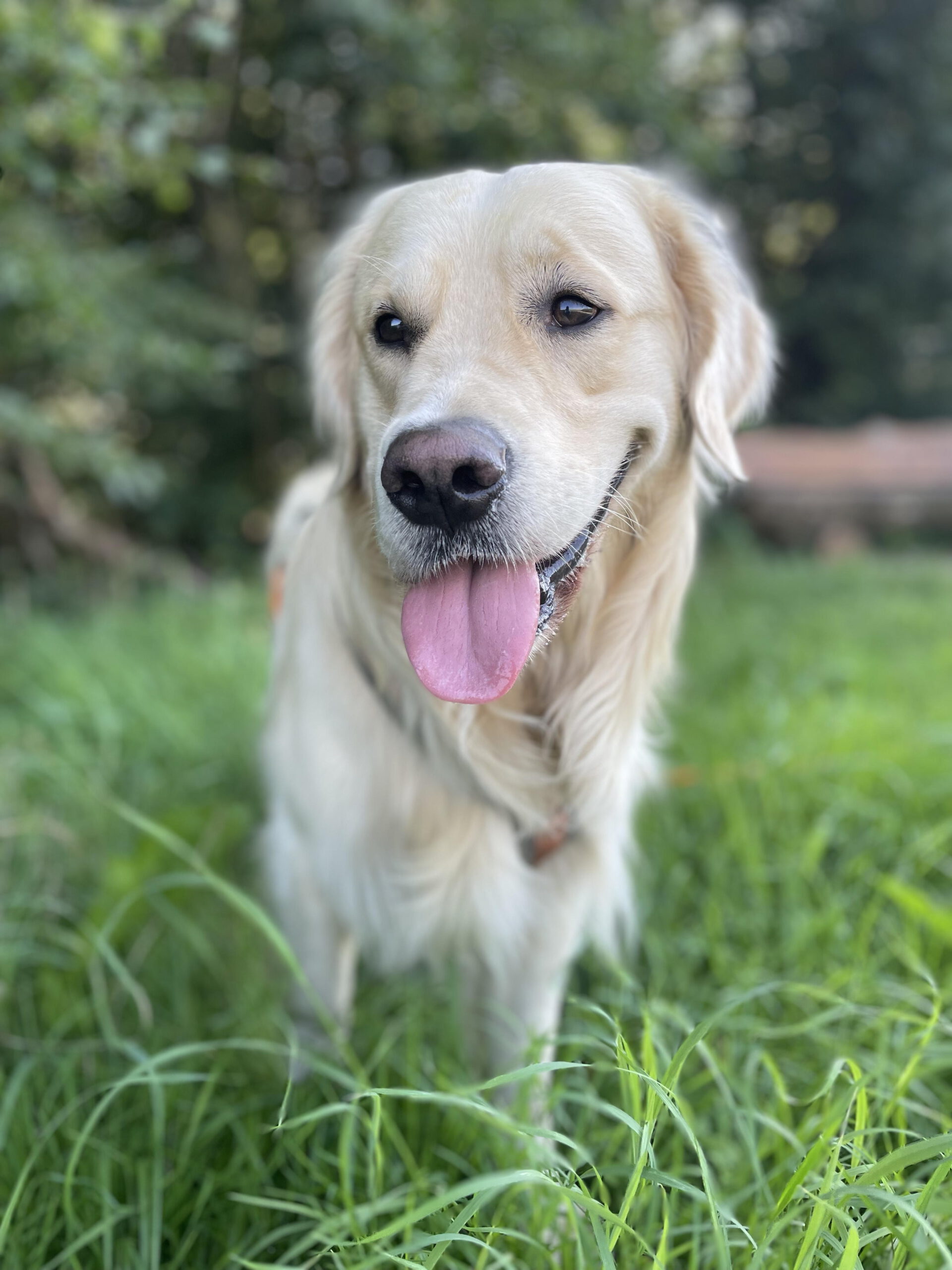 Ich bin ein freundlicher, verschmuster und agiler Golden Retriever, und ich liebe es, Menschen mit meinem fröhlichen Wesen zum Lächeln zu bringen. Am glücklichsten bin ich, wenn ich ganz nah bei meinen Menschen sein darf – beim Kuscheln auf dem Sofa oder wenn wir einfach zusammen Zeit verbringen. Trotz meiner anhänglichen Art stecke ich voller Energie und Abenteuerlust. Ich bin immer bereit zum Spielen, Rennen, Mantrailing oder Schwimmen und genieße lange Spaziergänge durch die Natur.